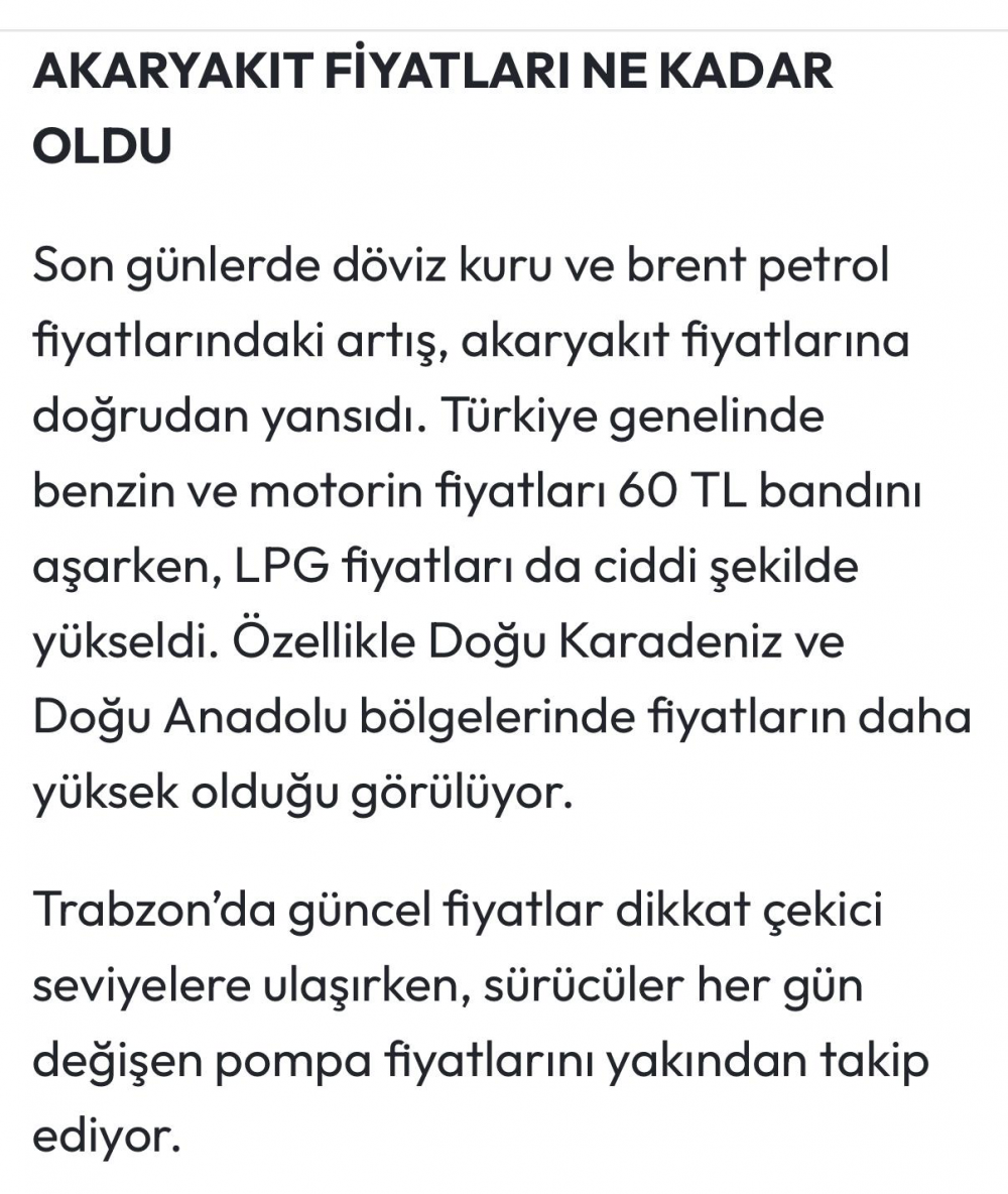 AKARYAKIT FİYATLARI NE KADAR OLDU