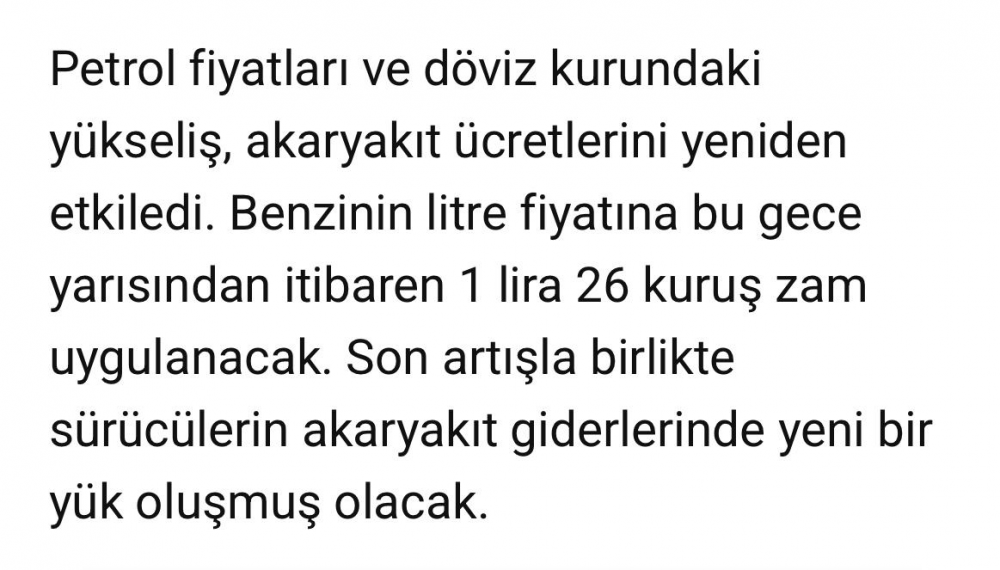 Akaryakıta zam var
