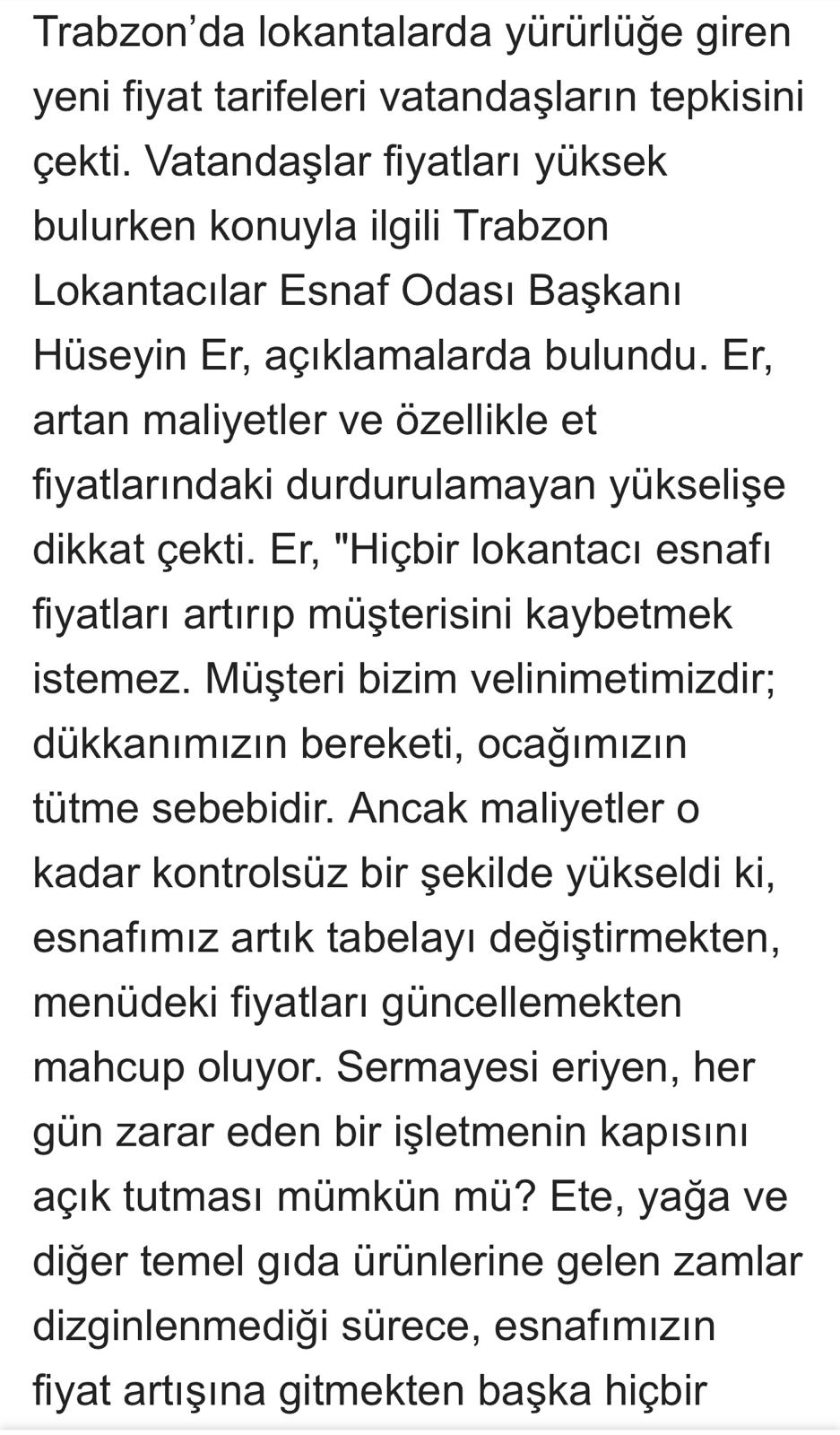Başkan Er Et fiyatları tavan yaptı.