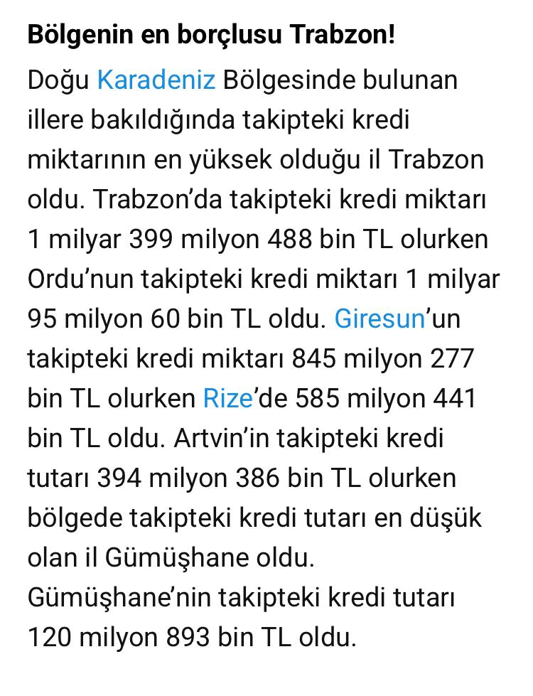 Bölgenin en borçlusu Trabzon!