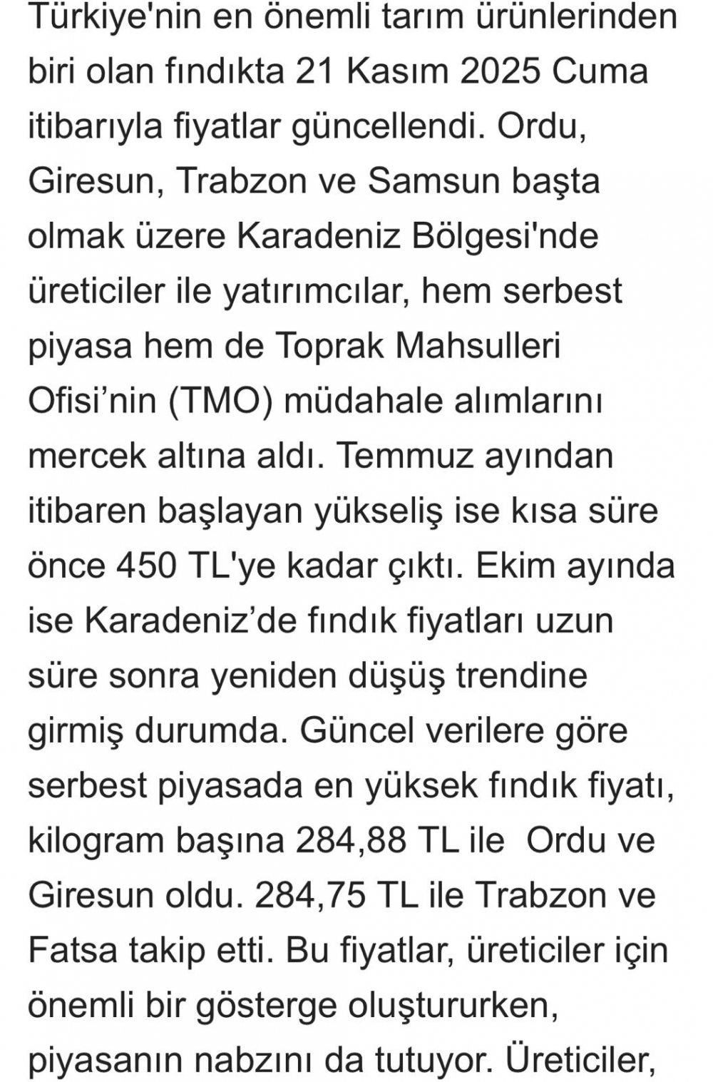 Fındık fiyatları güncellendi