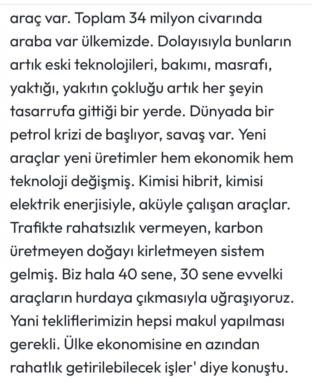 'Hurda araçlar trafikte, yaklaşık 20 yaş üstünde 8 milyon araç var. Yapılandırma ve hurda araç teşviki nefes aldırır'