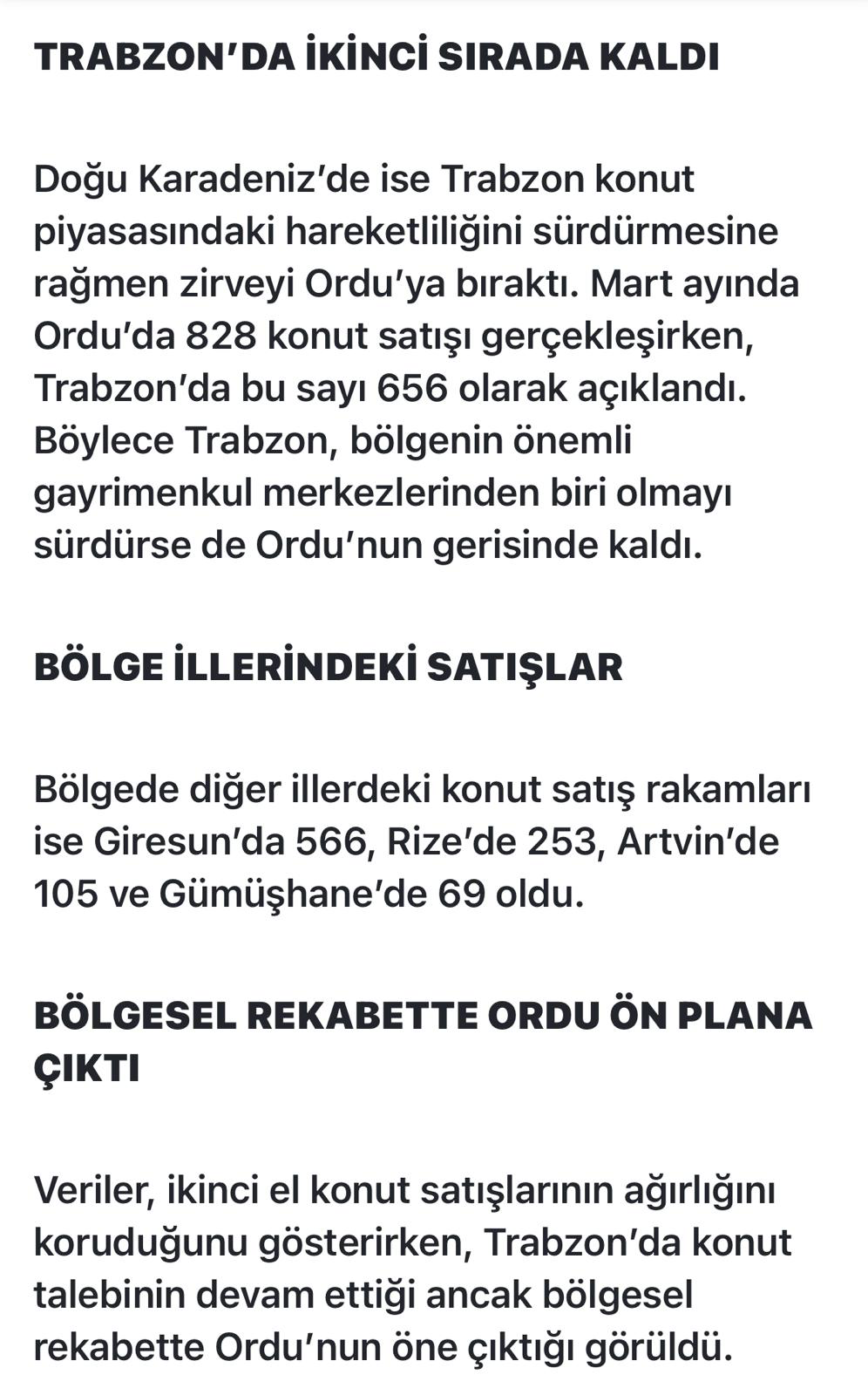 TRABZON'DA İKİNCİ SIRADA KALDI