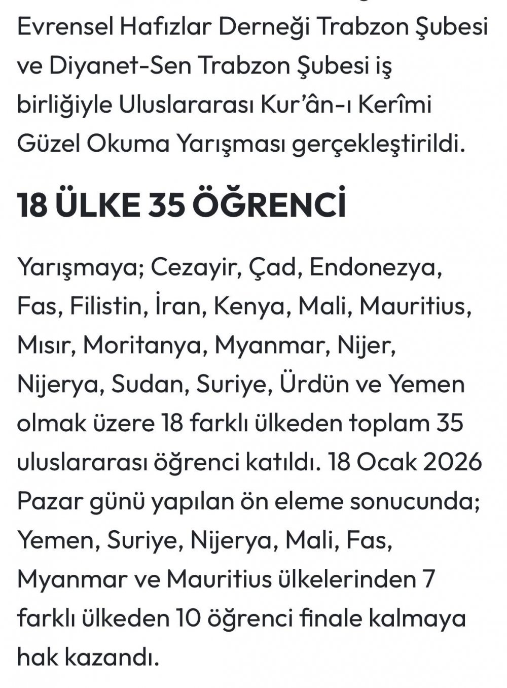 18 ülkeden 35 Hafız trabzon’da yarıştılar.