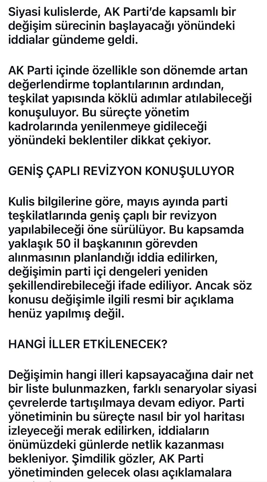 Ak Parti’de 50 il başkanı görevden alınıyor aralarında doğu Karadeniz illeri de var.
