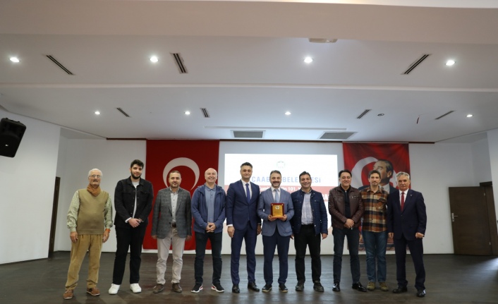 Konuşmanın ardından Belediye Başkan Yardımcısı Cevdet Bayraktar, Dr. Öğretim Üyesi Muzaffer Başkaya’ya plaket takdim etti.