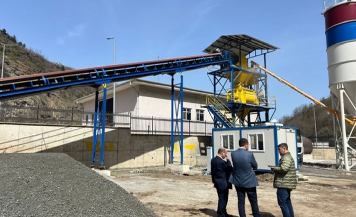Akçaabat Belediyesince Düzköy yolu üzerinde kurulan kuru beton santrali hizmete açıldı.