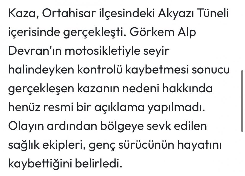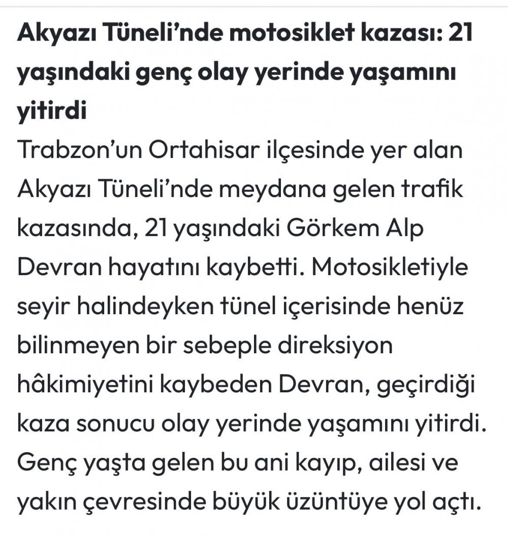 Akyazı Tüneli'nde motosiklet kazası: 21 yaşındaki genç olay yerinde yaşamını yitirdi
