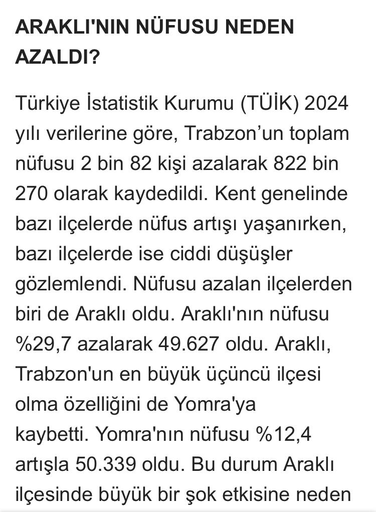 ARAKLI'NIN NÜFUSU NEDEN AZALDI?