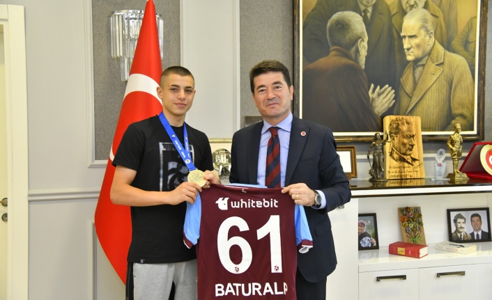 Bosna Hersek’te düzenlenen Avrupa Boks Şampiyonası Üst Minikler Kategorisi’nde İtalyan rakibini mağlup ederek altın madalya kazanan Baturalp Çevik, aynı zamanda antrenörü olan babası Gökhan Çevik ile birlikte, Ortahisar Belediye Başkanı Ahmet Kaya’yı ziyaret etti.