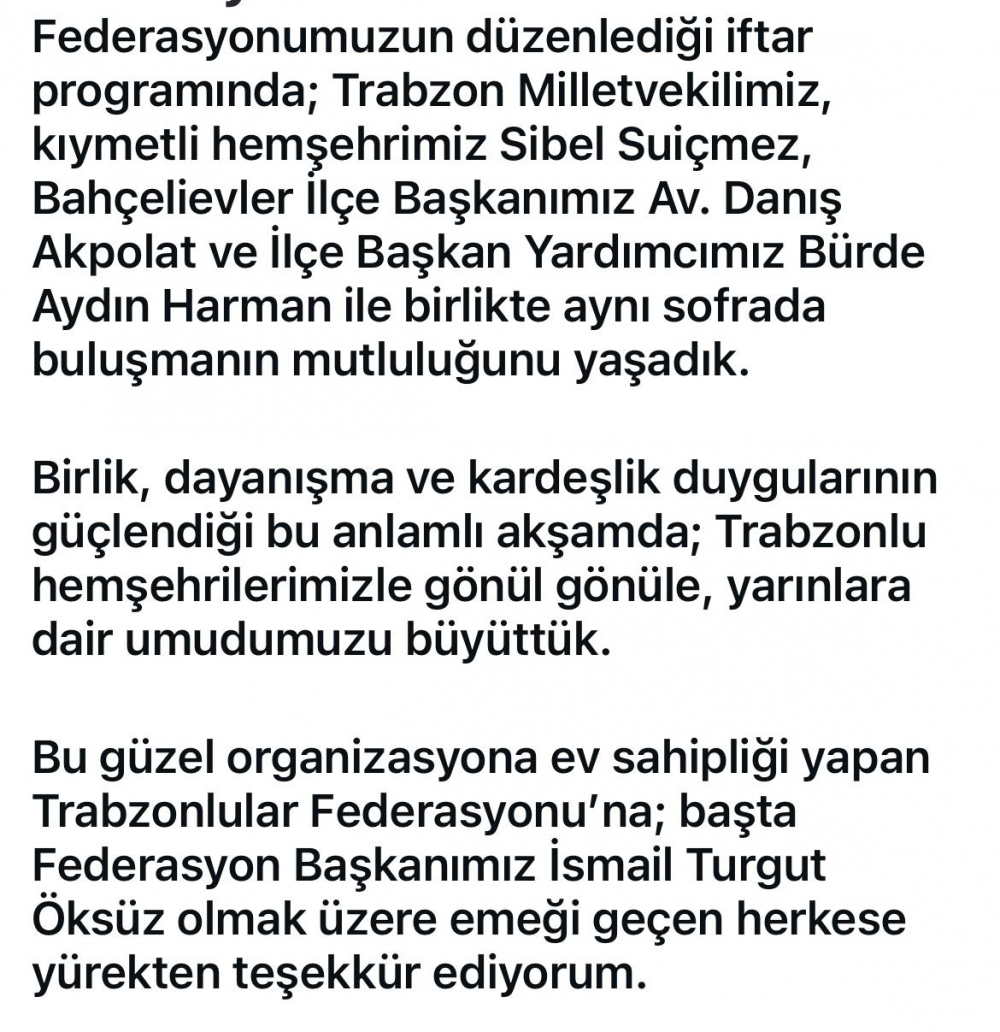 Av.Suiçmez İstanbul’da Trabzonlularla iftarda buluştular.