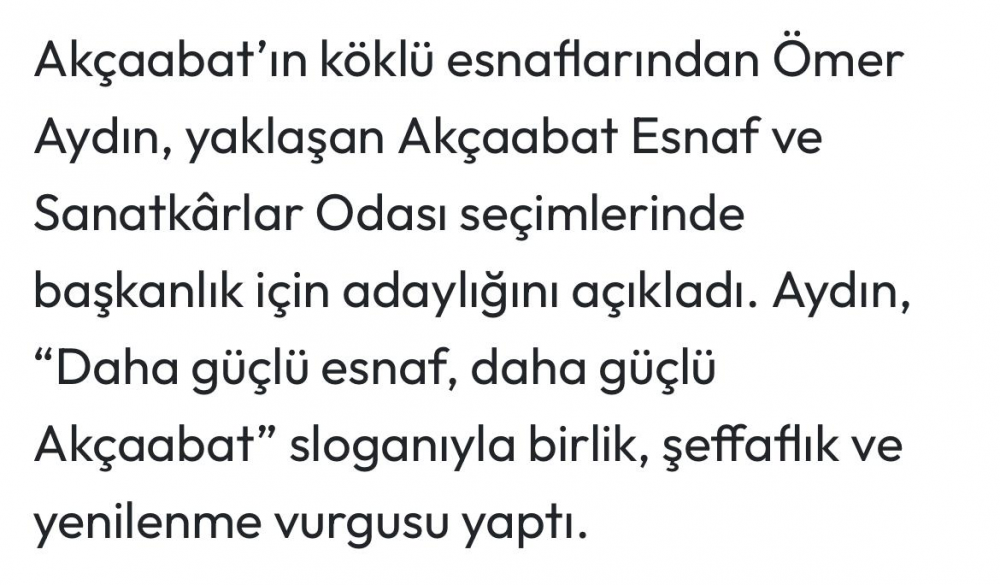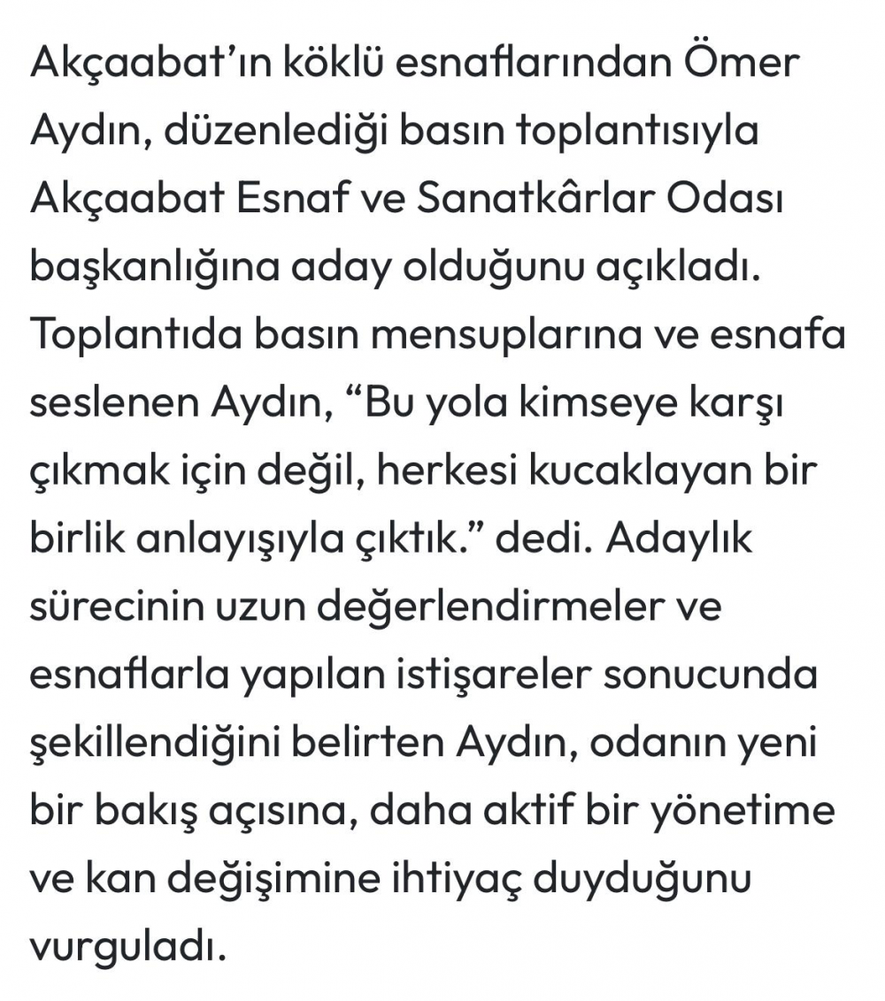 Aydın Akçaabat esnaf birliği başkanlığına aday.