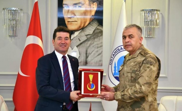 Ortahisar belediye başkanı Ahmet Kaya’ya iadei ziyarette bulunan il Jandarma Komutanı tuğgeneral bahattin Murat Yakın ziyaretin anısına jandarmanın plaketini takdim etti.