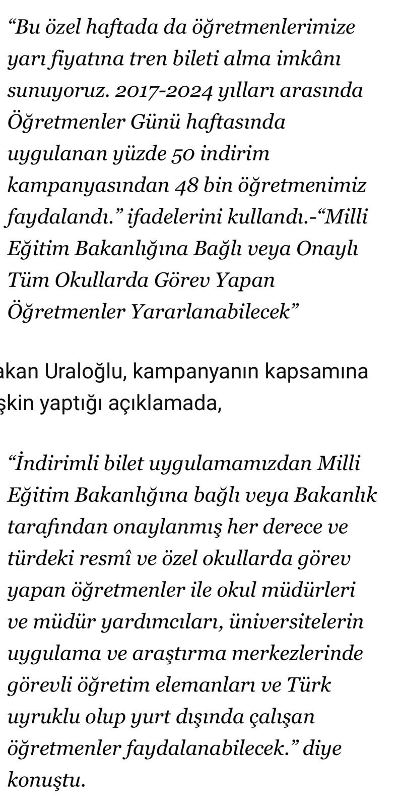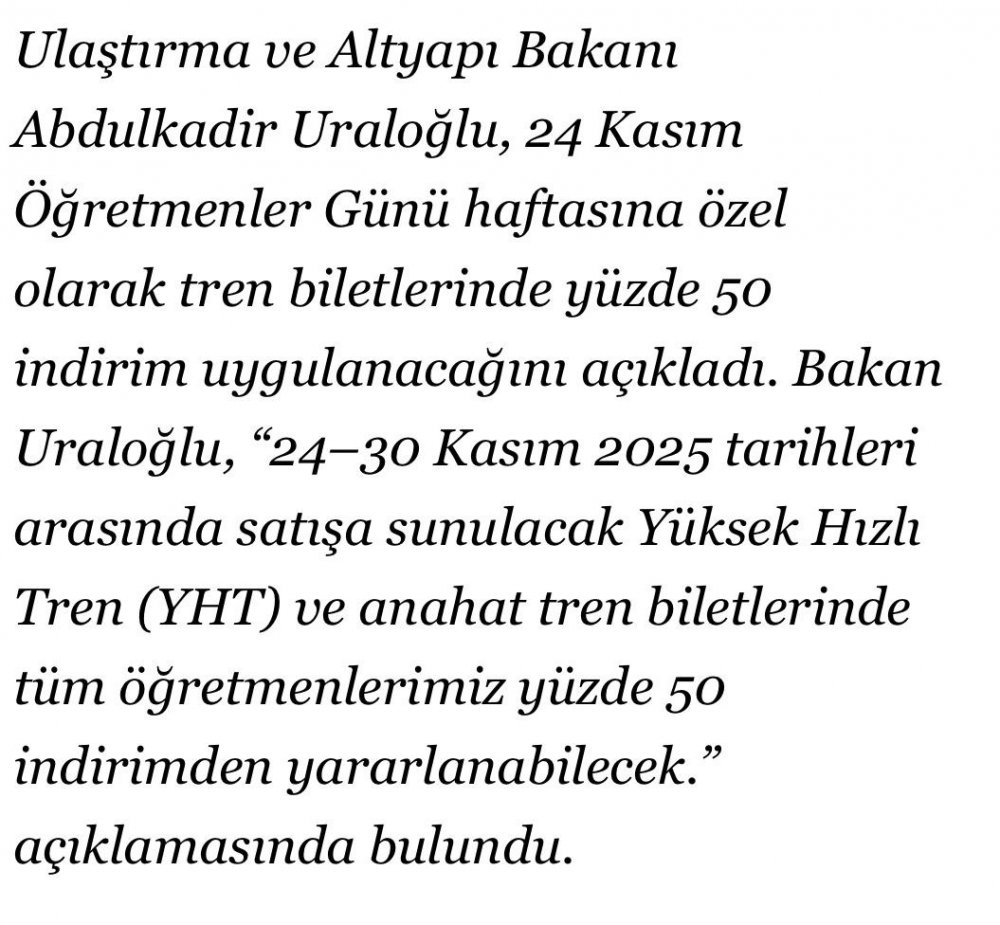 Bakan Uraloğlu 24 Kasım Öğretmenlere %50 indirim.
