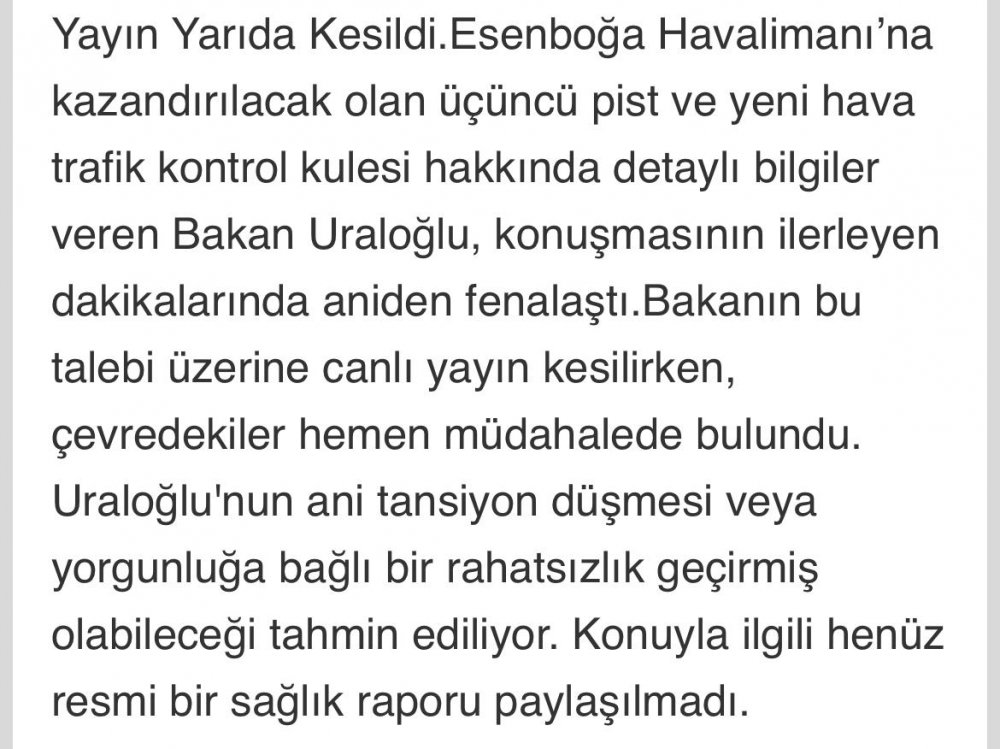 Bakan Uraloğlu canlı yayında rahatsızlandı.