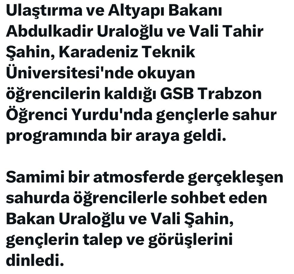 Bakan Uraloğlu gençlerle sahur sofrasında buluştu.