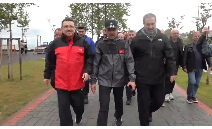 Bakan,Başkanlar ve daire müdürleri yürüyüş yaptılar.