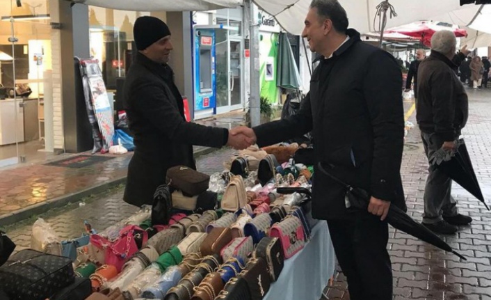 Ak partinin Sürmene belediye başkan adayı Hüseyin azizoğlu yağmurlu bir günde semt pazarlarını gezdi vatandaş ve esnafla bir araya geldi dert dinledi sorunların çözümü için elele vermeliyiz dedi.