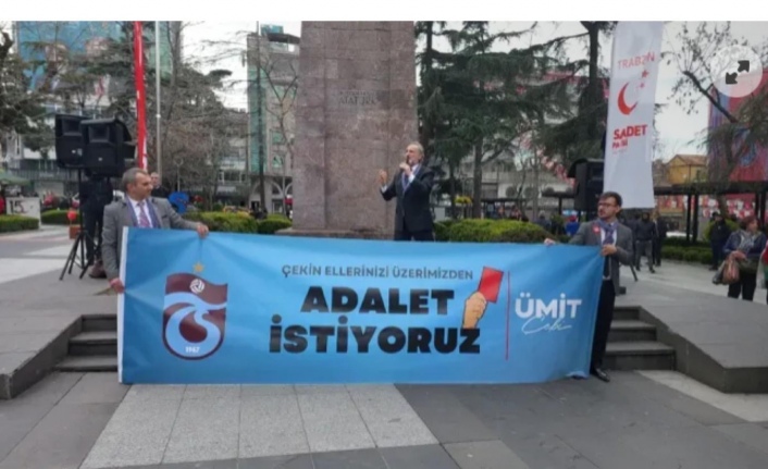 Saadet Partisi ortahisar belediye başkan adayı ümit Çebi Trabzonlu Trabzonsporlu yapın haksızlıklar uluslara karşı meydan parkı Atatürk alanında basın açıklaması gerçekleştirdi başkan Çebi bens futbolcuyum yavuz Selim’in dili olsa konuşsa futbolcu zamanda rüzgâr ümit derlerdi şimdi uyutuyorlar adi 1.01’i değilsin ada yolu Trabzon için konuşmak istiyorum muhterem orta isarlar adalet eğer bir ülkede huzur da yoktur bütün ülkede olan sıkıntının sebebi on adet kelimesinin sadece adının kullanılmasıdır kimden ve nereden gelirse gelsin Şiddet korku baskı karşısındayız Trabzon bu konuştuğunu ispat etmiş bir yıldız Saya giren kimse ama buranın çocuğu, İster provakatör yanlış bir işe bulaşmıştır,