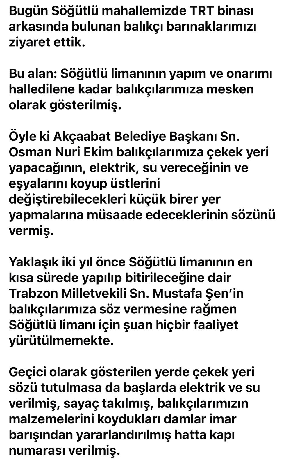 Başkan Av. köroğlu balıkçılarımıza verdiğiniz sözleri tutun.