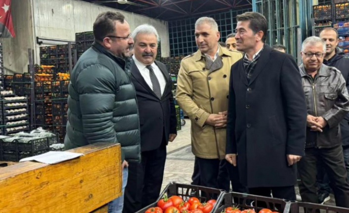 Trabzon sebze ve meyve hali dernek başkanı Ercan Şılbır’ı CHP ortahisar ilçe başkanı haluk batmaz, belediye başkan adayı Ahmet Kaya bir meclis üyesi adaylar ziyaret ederek sebze ve meyve hali esnafından 31 Mart 2024 yerel seçimlerinde destek istediler.