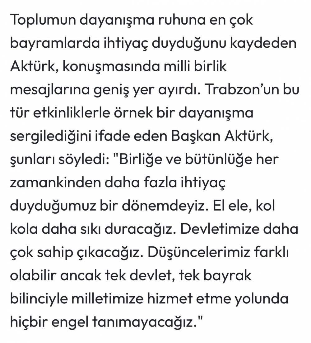 Başkan Aktürk bayramlar birlik ve beraberliğin...