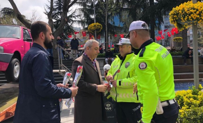 Ak Parti ortahisar ilçe başkanı Selahattin Çebi polis teşkilatının kuruluşunun 179. yıl dönümü dolayısıyla Atatürk alanında görev yapan polis memurlarına çiçeklerini takdim edip başarılar diledi.