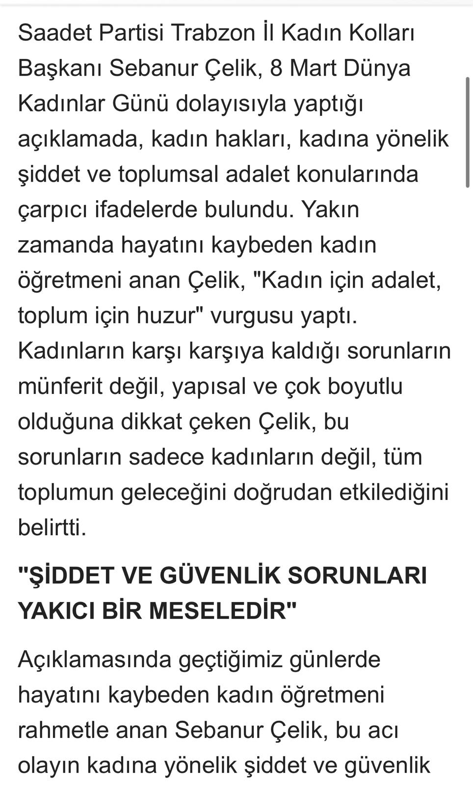 Başkan Çelik kadın için adalet istiyoruz.