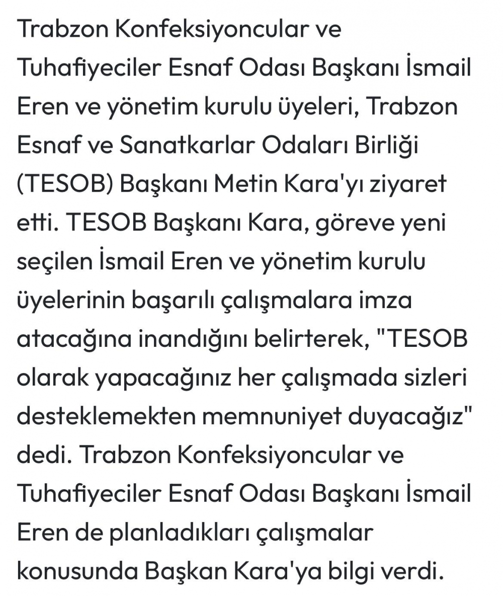 Başkan Eren Başkan Kara’yı ziyaret etti.