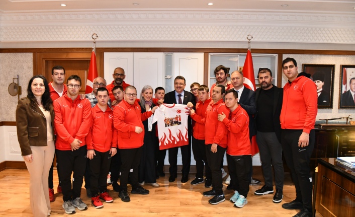 Trabzon Büyükşehir Belediye Başkanı Ahmet Metin Genç, Down Sendromlu Basketbol Milli Takımı sporcuları ve teknik heyetini makamında ağırladı. Daha önce Dünya Şampiyonası’nda büyük bir başarıya imza atarak ikincilik elde eden milli takım, şimdi gözünü 15-21 Haziran tarihlerinde İtalya’da düzenlenecek olan Avrupa Şampiyonası'na dikti. Ziyarette konuşan Milli Takım Başantrenörü Ufuk Bulut, sporcuların gösterdiği azme dikkat çekerek, “Uzun yıllar boyunca bu bireylerin bir şey başaramayacağı düşünülüyordu. Oysa biz onların neler yapabildiğini dünyaya gösterdik. Dünya ikincisi olduk. Elbette başarı önemli ama daha önemlisi onların sporla iç içe, aktif ve sosyal bir hayat yaşamaları. Şimdi hedefimiz Avrupa şampiyonluğu” dedi.