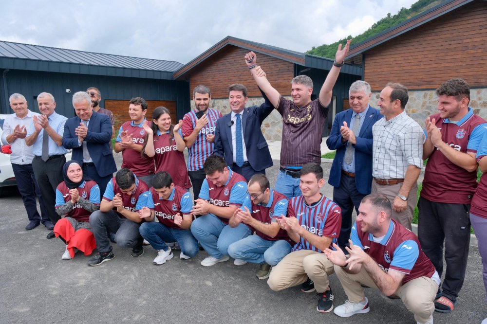 Başkan Kaya, “En Mutlu Köy yerleşkemizdeyiz. Bugün 12 Ağustos, özel bir gün. Burak kardeşimizin doğum günü. Biz de başkan yardımcılarımızla bir fırsat oluşturarak Burak kardeşimizi doğum gününde yalnız bırakmadık. Burak’ın yeni yaşını kutluyor, ona sağlıklı bir ömür diliyoruz. Burada 19 özel gereksinimli kardeşimiz, üretimin bir parçası halinde, oyuncaktan, dokuma ve ahşap ürünlere, sebze ve yumurtaya kadar birçok ürünün üretimini gerçekleştiriyor. Resimler, el işçiliği ürünler yapıyorlar, her biri üretime katkı vermeye çalışıyor. Onlarla çalışmaktan ötürü çok mutlu olduğumuzu ifade ediyorum. Kardeşlerimizin her birine Trabzonspor’umuzun formalarını hediye ettik. İnşallah birlikte maçlara da katılıp şampiyonluğumuzu hep birlikte kutlayacağız” diye konuştu.