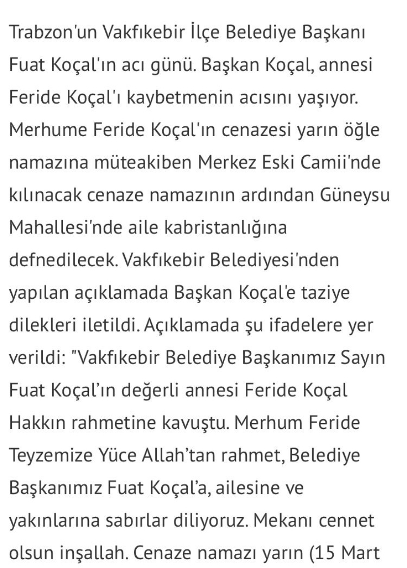 BASKAN KOÇAL'IN ANNE ACISI