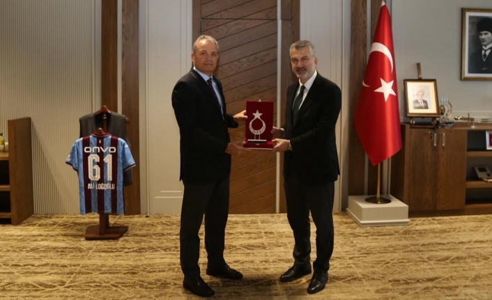 Trabzon il emniyet Müdürlüğü’ne atanan Ali Loğoğlu’nu çiçekleri ile ziyaret eden ak Parti il başkanı Sezgin Mumcu’ya il müdürü loğoğlu Türk bayrağını sembolize eden plaket takdim etti.
