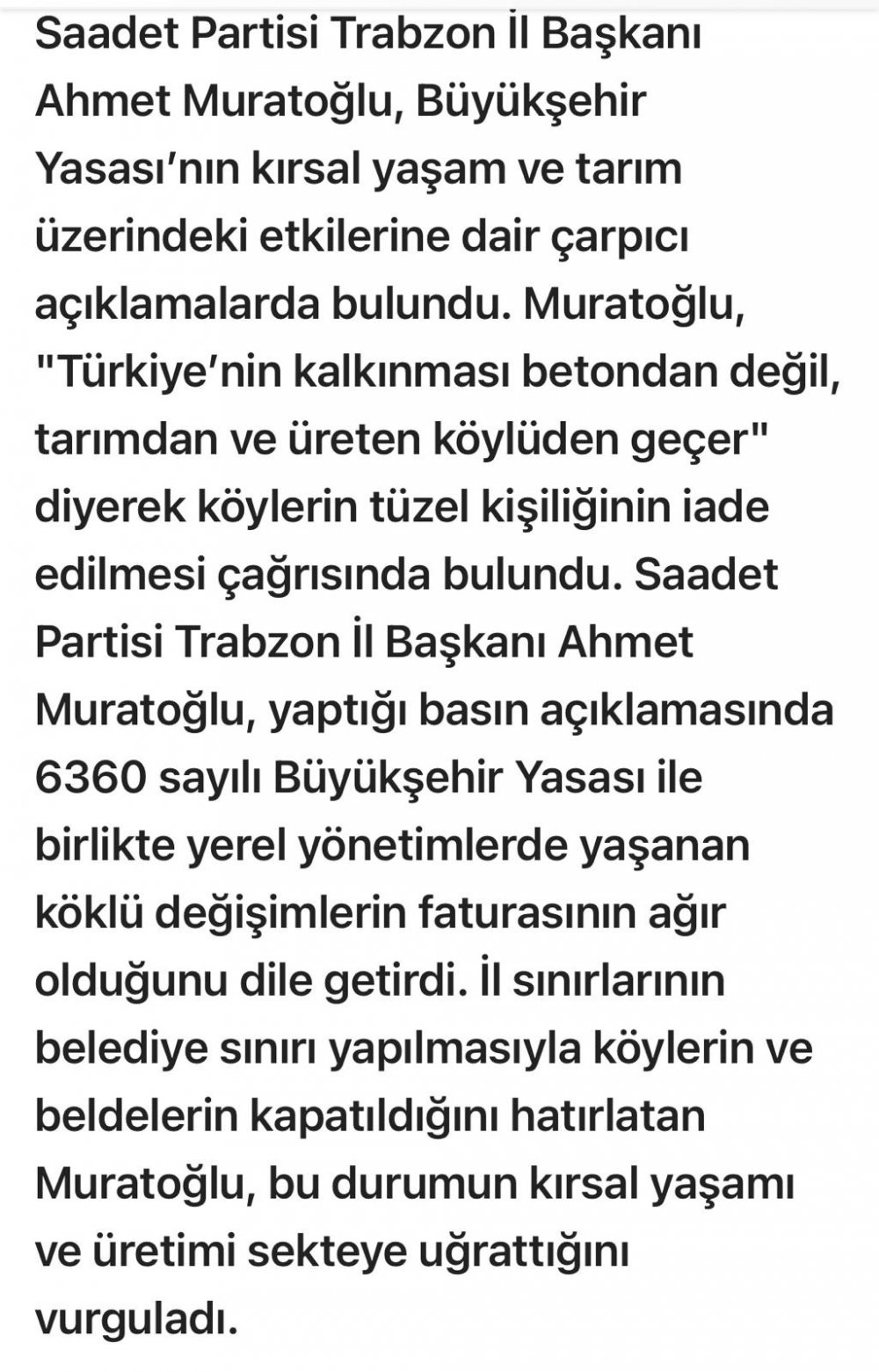Başkan muratoğlu Büyükşehir Yasası köyleri zayıflattı.