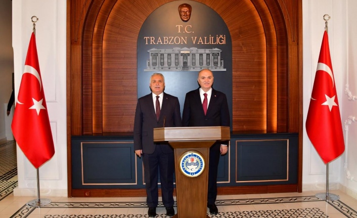 Trabzon Valisi Aziz Yıldırım'ı, Düzce Belediye Başkanı Faruk Özlü ziyaret etti ve şeref defterini imzaladı.