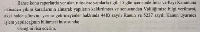 ”yazının üzerinden 330 (üçyüzotuz) gündür hiçbir işlem yapılmadığı gibi tahribatlar, sahiplenmeler ve keyfi uygulamalar hız kesmeden devam ediyor.