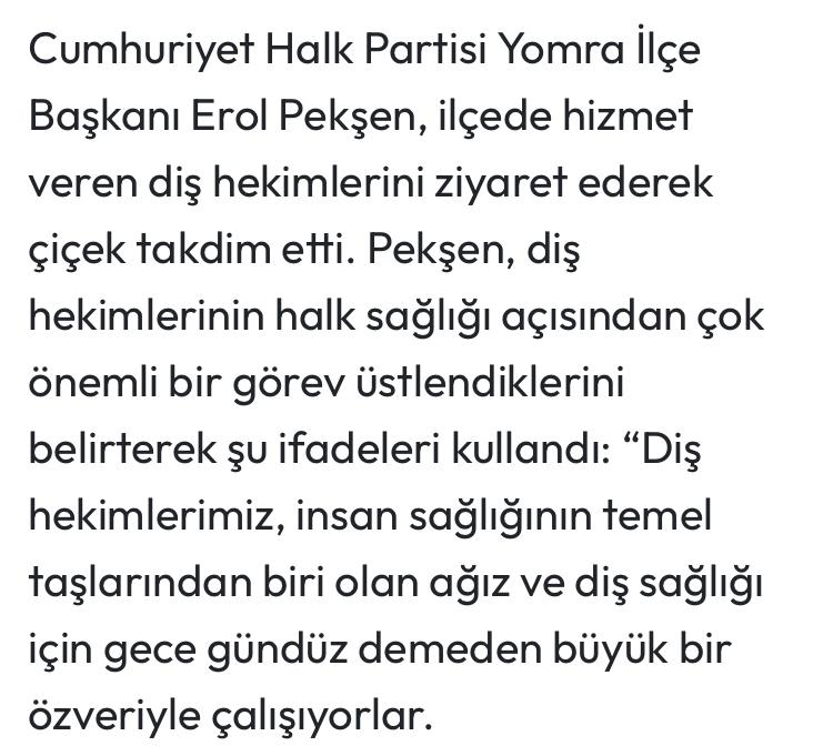 Başkan Pekşen Diş hekimleri gününü kutladı.