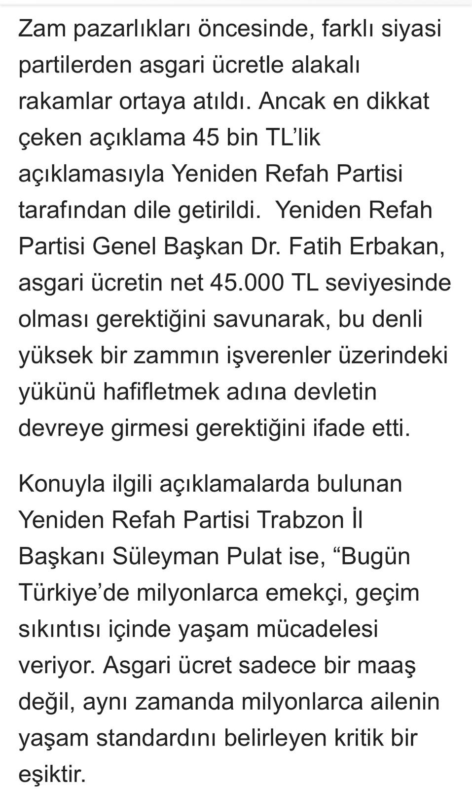 Başkan Pulat asgari ücret 45.000 TL olmalıdır