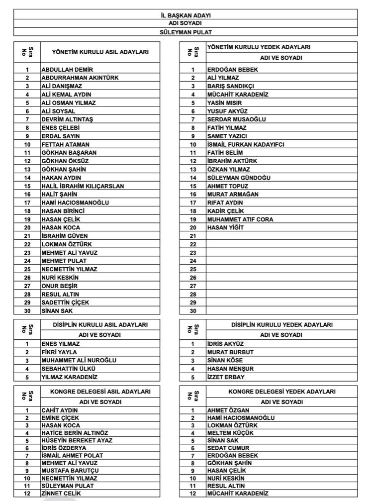 Yeniden Refah Partisi Genel Başkanı Fatih Erbakan’ın katılımıyla gerçekleşen olağan genel kurulda yeniden il başkanlığına seçilen Süleyman Polat’ın yönetimi şu isimlerden oluştu.