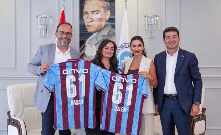 Ortahisar Belediye başkanı Ahmet Kaya’yı Kıbrıs’ın Başiskele Belediye başkanı Hasan sadıkoğlu ve eşi Özlem sadıkoğlu ziyaret ettiler Başkan Kaya ve eşi tuğba kaya misafir başkan sadıkoğlu ve eşi Özlem sadıkoğlu‘na adlarının yazılı olduğu Trabzonspor formasını takdim ettiler.