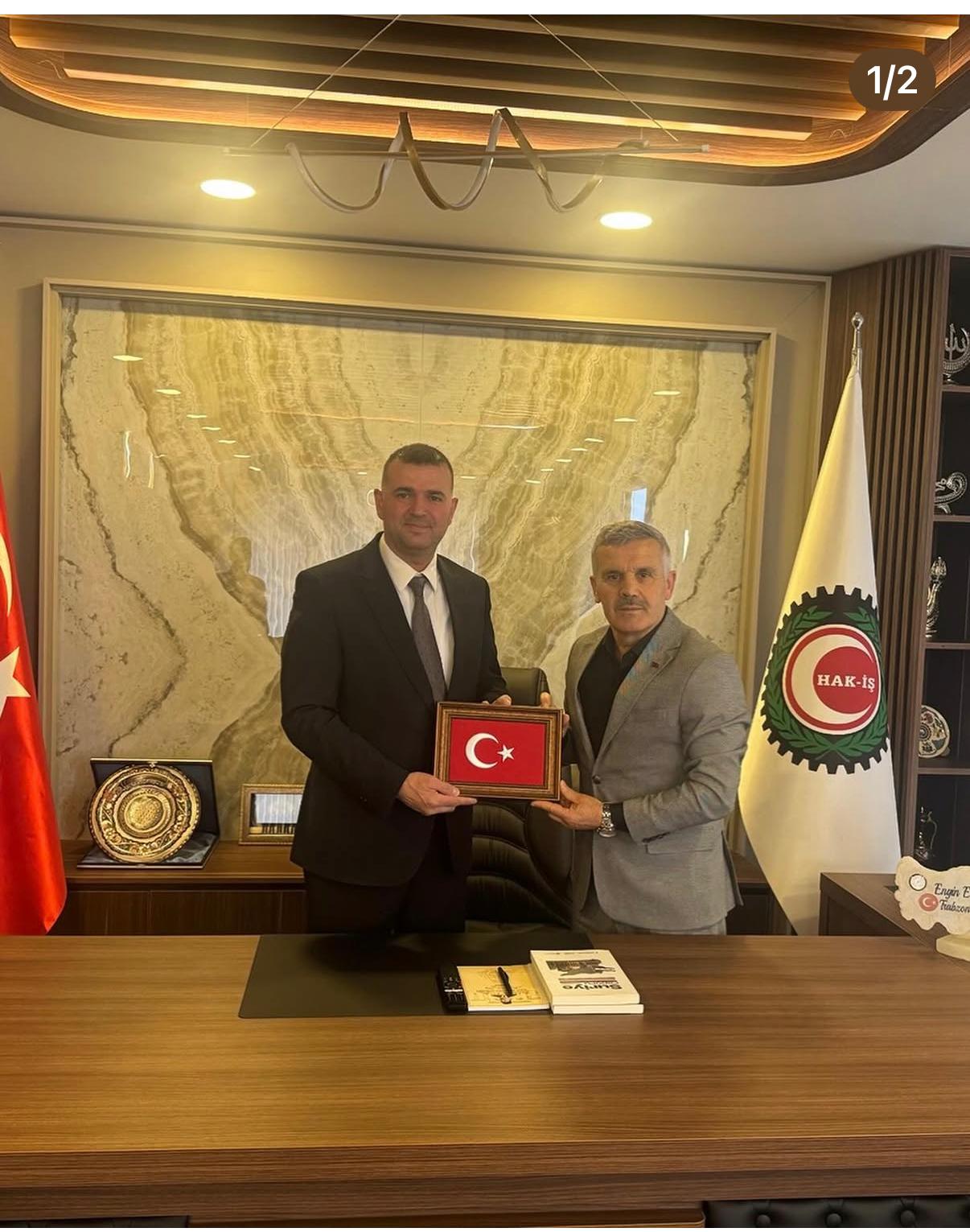 MHP İl Başkanı Tolgay Sivrikaya, Öz Sağlık İş Sendikası Trabzon Şube Başkanı Engin Erbaşaran’ı ziyaret etti. Görüşme sırasında Sivrikaya’ya Türk bayrağı amblemi taşıyan bir plaket takdim edildi ve kendisi de Erbaşaran’a görevlerinde başarı temennilerini iletti.