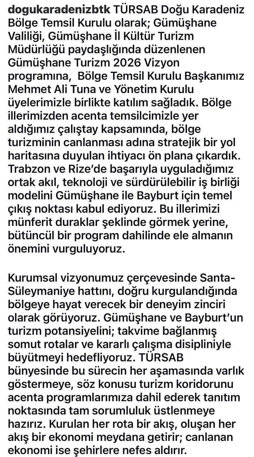 Başkan Tuna turizme bölgesel bakmalıyız.