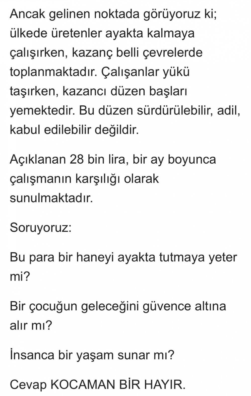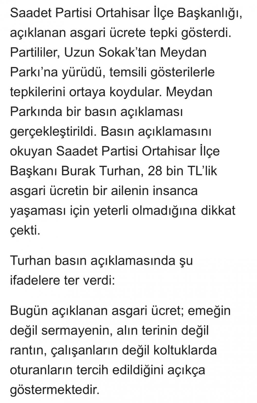 Başkan turhan Asgari ücret ölüm ücretidir.