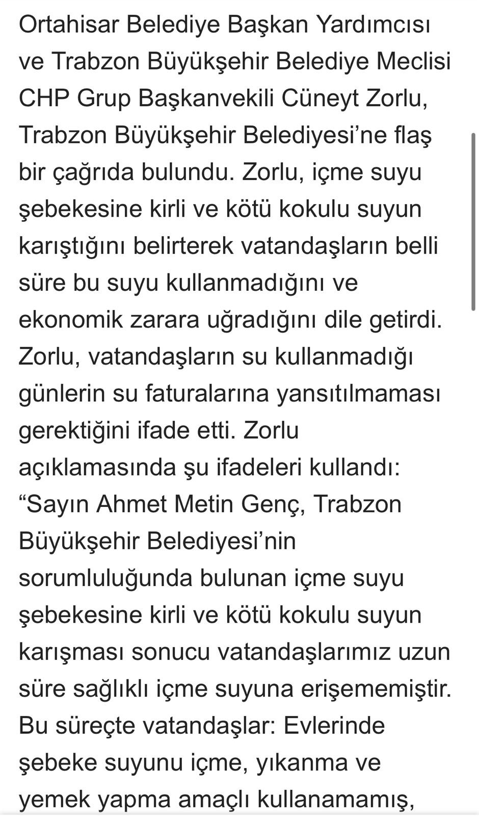 Başkan vekili zorla kullanılmayan suyun parasını vatandaşına alamazsınız