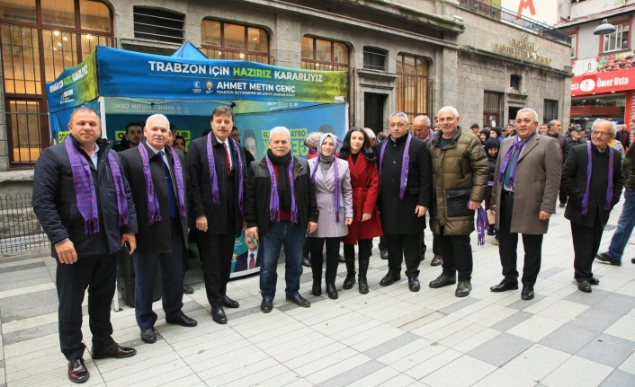 Ak Parti Ortahisar ilçe başkanı Selahattin Çebi Belediye Başkan adayı Ergin Aydın ve Belediye meclis üyesi adaylar borda mavi kaşkollarla Uzun sokakta kurulu bulunan Seçim stantlarını ziyaret ettiler.