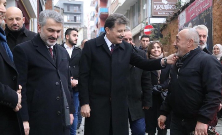Ak Parti il başkanı Sezgin mumcu ve ortahisar ilçe Başkanvekili Enes ramazanoğlu ile Belediye Başkan adayı Ergin Aydın cadde,sokak gezip vatandaşlardan destek istiyorlar ve yaptıklarımız yapacaklarımızın teminatıdır diyorlar.