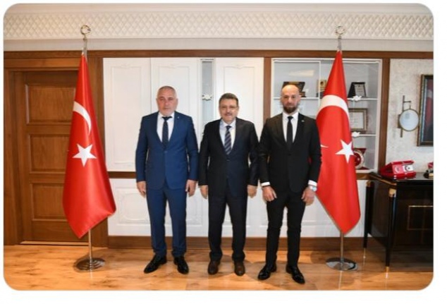 Trabzon Büyükşehir Belediye Başkanı Ahmet Metin Genç, Büyük Birlik Partisi İl Başkanı Adem Aydın ve Ortahisar İlçe Başkanı Ali Akpınar'ı nezaket ziyareti için ağırladı.