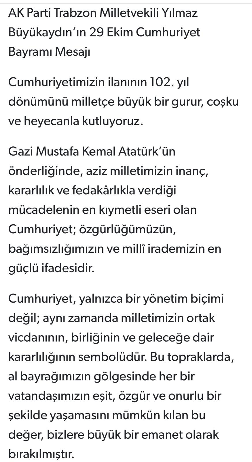 Büyükaydın Cumhuriyet imizin 102. yıl dönümü kutluyorum
