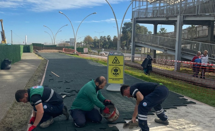 BÜYÜKŞEHİR SAHİLDEKİ YÜRÜYÜŞ YOLUNU YENİLİYOR