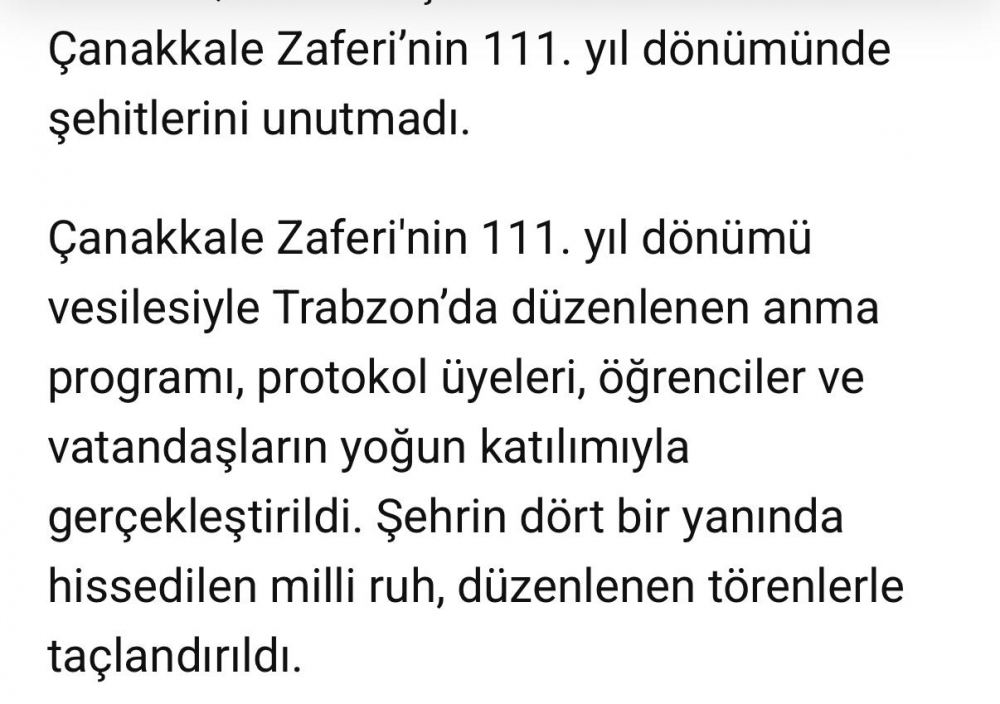 Çanakkale Zaferi'nin 111. yıl dönümünde şehitlerini unutmadı.